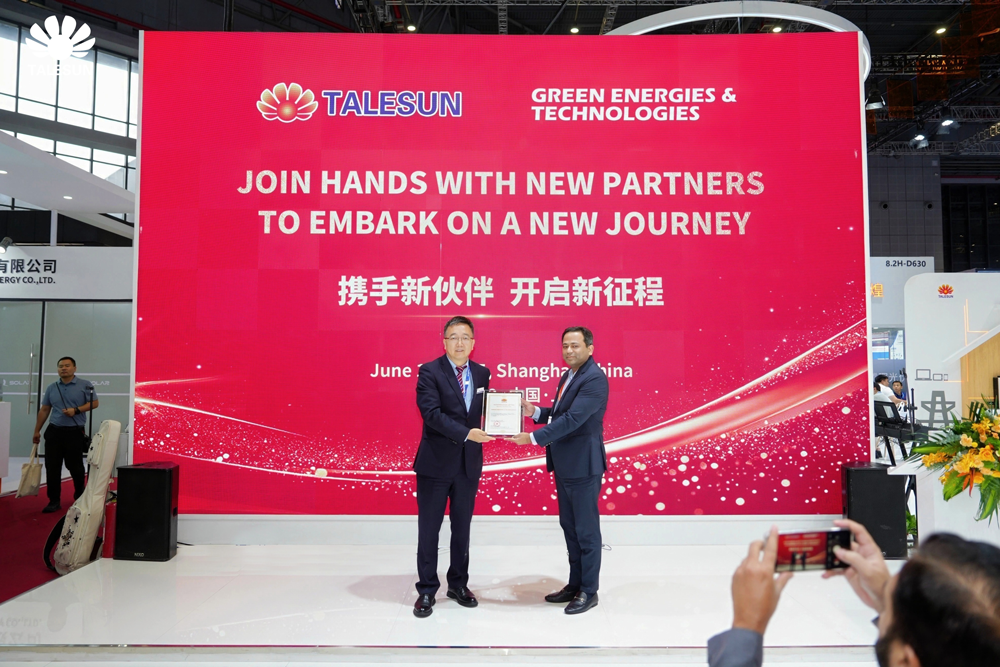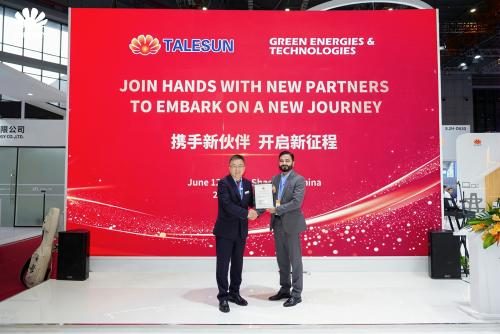授獎(jiǎng)儀式結(jié)束后,騰暉光伏舉行了對(duì)巴基斯坦GREEN ENERGIES & TECHNOLOGIES的代理授權(quán)儀式。該公司在當(dāng)?shù)啬茉搭I(lǐng)域擁有豐富的資源和廣泛的市場(chǎng)渠道,雙方將攜手共進(jìn),共同推動(dòng)巴基斯坦光伏產(chǎn)業(yè)的發(fā)展,為當(dāng)?shù)靥峁┣鍧崱⒖沙掷m(xù)的能源解決方案。