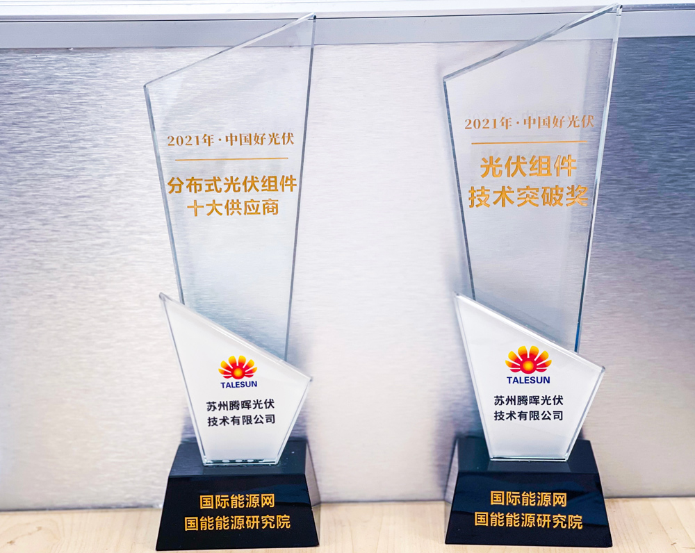 晚宴上,騰暉光伏榮獲“2021年度分布式光伏組件十大供應(yīng)商獎(jiǎng)”和“2021年度光伏組件技術(shù)突破獎(jiǎng)”。這兩個(gè)獎(jiǎng)項(xiàng)的獲得是對(duì)騰暉光伏2021年度在光伏組件領(lǐng)域所做出的努力的肯定,也體現(xiàn)了騰暉光伏的行業(yè)品牌影響力。一直以來(lái),騰暉光伏堅(jiān)持用品質(zhì)與創(chuàng)新邁向更高的臺(tái)階,公司將以本次獲獎(jiǎng)為契機(jī),繼續(xù)竭盡全力為客戶提供最優(yōu)質(zhì)的產(chǎn)品和服務(wù),共同維護(hù)光伏產(chǎn)業(yè)發(fā)展的行業(yè)口碑。努力為中國(guó)早日實(shí)現(xiàn)“碳中和”目標(biāo)貢獻(xiàn)力量!