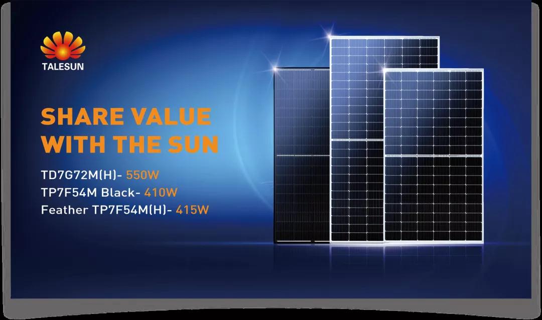此次展會,騰暉光伏將展出三款光伏組件:550W TD7G72M(H)、410W TP7F54M Black、和 415W Feather TP7F54M(H)。所有組件均采用182mm大尺寸半片電池片和多主柵設計,具備優異的抗PID性能,可有效提升轉換效率,為電站長效穩定運行護航。