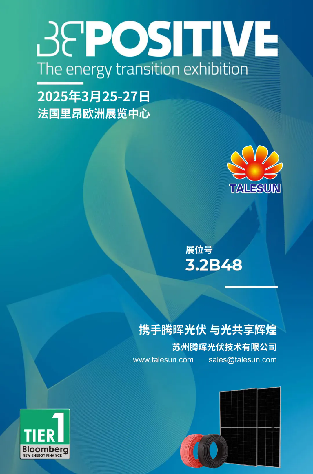 陽春三月,萬物生暉。正值全球能源轉型邁向深化之年,騰暉光伏(Talesun Solar)將于2025年3月25日同步亮相法國里昂BePOSITIVE能源展、南非約翰內斯堡Solar & Storage Show Africa及美國達拉斯Energy Storage Summit USA三大國際能源盛會。這場橫跨歐、非、美三大洲的聯動,恰似春風化雨,以區域深耕之姿串聯全球能源生態,展現企業從成熟市場到新興前沿的戰略縱深。