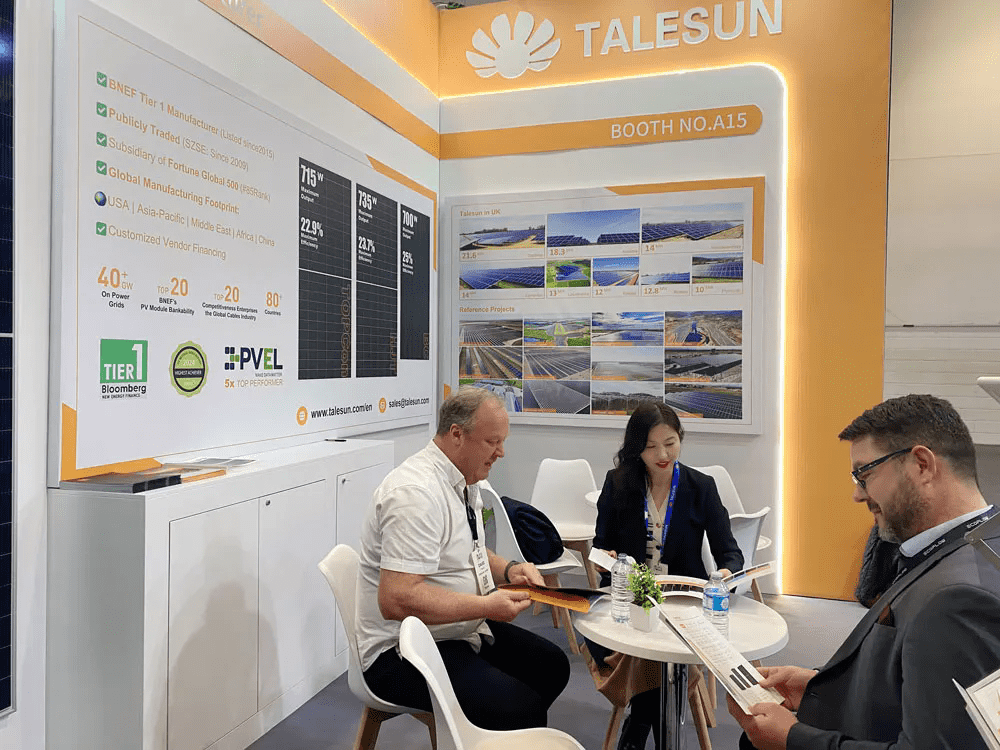 2025年4月2日,英國倫敦ExCeL國際會展中心迎來了一場全球光伏與儲能領域的盛會——2025英國倫敦國際太陽能暨儲能展(Solar & Storage Live London)。騰暉光伏(Talesun Solar)攜高效TOPCon 600W和HJT 735W光伏組件重磅亮相,展示了公司在新能源領域最新成果,吸引了來自全球各地的行業(yè)專家、投資者及客戶的關注。
