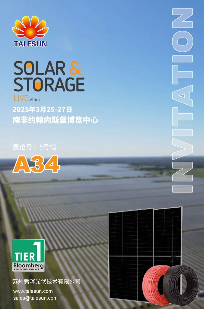 2025南非國際太陽能暨儲能展覽會(Solar & Storage Show Africa)正在約翰內斯堡舉行。騰暉光伏誠邀全球能源領域伙伴蒞臨5號館A34展位, 騰暉光伏銷售團隊將為您分享公司在多國推動能源轉型的實踐成果,探討最新光伏技術與本地化融合的經驗,共同探索非洲市場機遇。