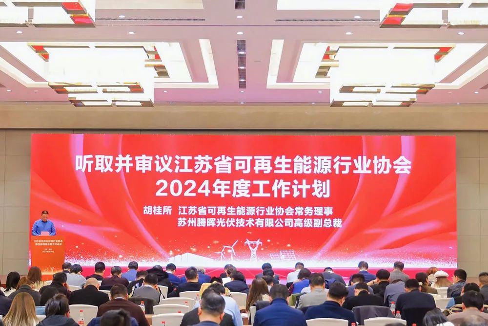 2024年1月19日,江蘇省可再生能源行業協會第四屆理事會第三次會議在南京隆重舉行。作為可再生能源領域的領軍企業之一,騰暉光伏高級副總裁胡桂所應邀出席此次會議。期間受協會委托代表協會宣讀了《江蘇省可再生能源行業協會2024年度工作計劃》,并與協會各理事共同探討了可再生能源的未來發展方向。