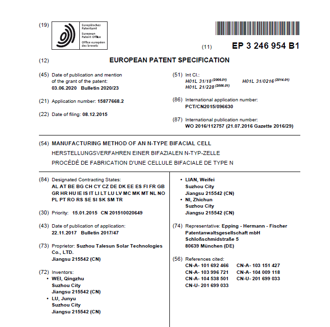 近日,騰暉光伏海外專利布局工作又取得了重要進展,四項光伏產品及系統相關的PCT專利已完成進入國家階段,其中一項發明專利進入歐盟,三項發明專利進入非洲。這為騰暉光伏核心產品及服務能夠進入歐盟和非洲等地區的光伏市場提供了必要的技術保障。騰暉光伏將積極響應國家“一帶一路”發展號召,依托自身在品牌、技術等方面的既有優勢,積極開展政府間國際科技合作攻關以及新產品國際市場開發,促進一帶一路沿線國家在新能源等領域的深入合作力度,提高各國之間在資源和市場的互聯互通、共享程度,通過綠色能源為一帶一路沿線國家的能源結構改革、經濟發展和生態環境改善做出貢獻。截至目前騰暉累計申請核心專利400多件,授權200多件,并建立了良好知識產權管理體系,為公司的全球化競爭提供了良好的知識產權保障。