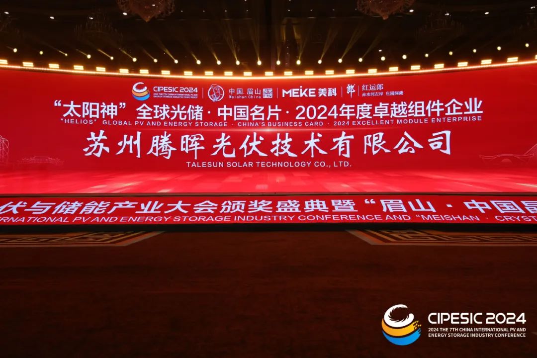 在大會期間,騰暉光伏憑借其出色的表現,榮獲了“太陽神”全球光儲·中國名片·2024年度卓越組件企業獎。這一殊榮不僅彰顯了騰暉光伏在光伏組件領域的領先地位,更體現了其在推動全球能源轉型和實現“雙碳”目標中的卓越貢獻。