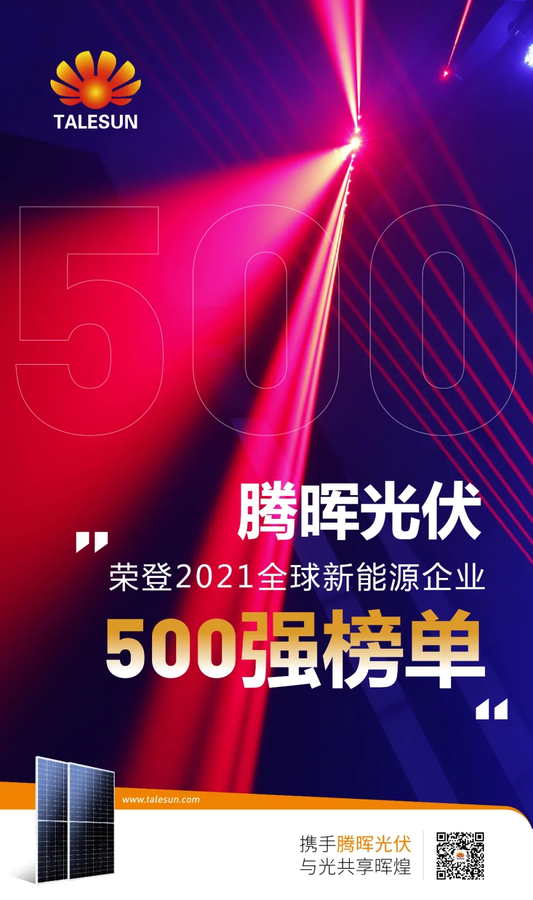 2021氫能產業發展論壇暨第十一屆全球新能源企業500強峰會于9月4日在山西太原舉辦,會上重磅揭榜“2021年全球新能源企業500強”。騰暉光伏已連續多年躋身全球新能源企業500強陣營,今年榮列本次榜單第272位。